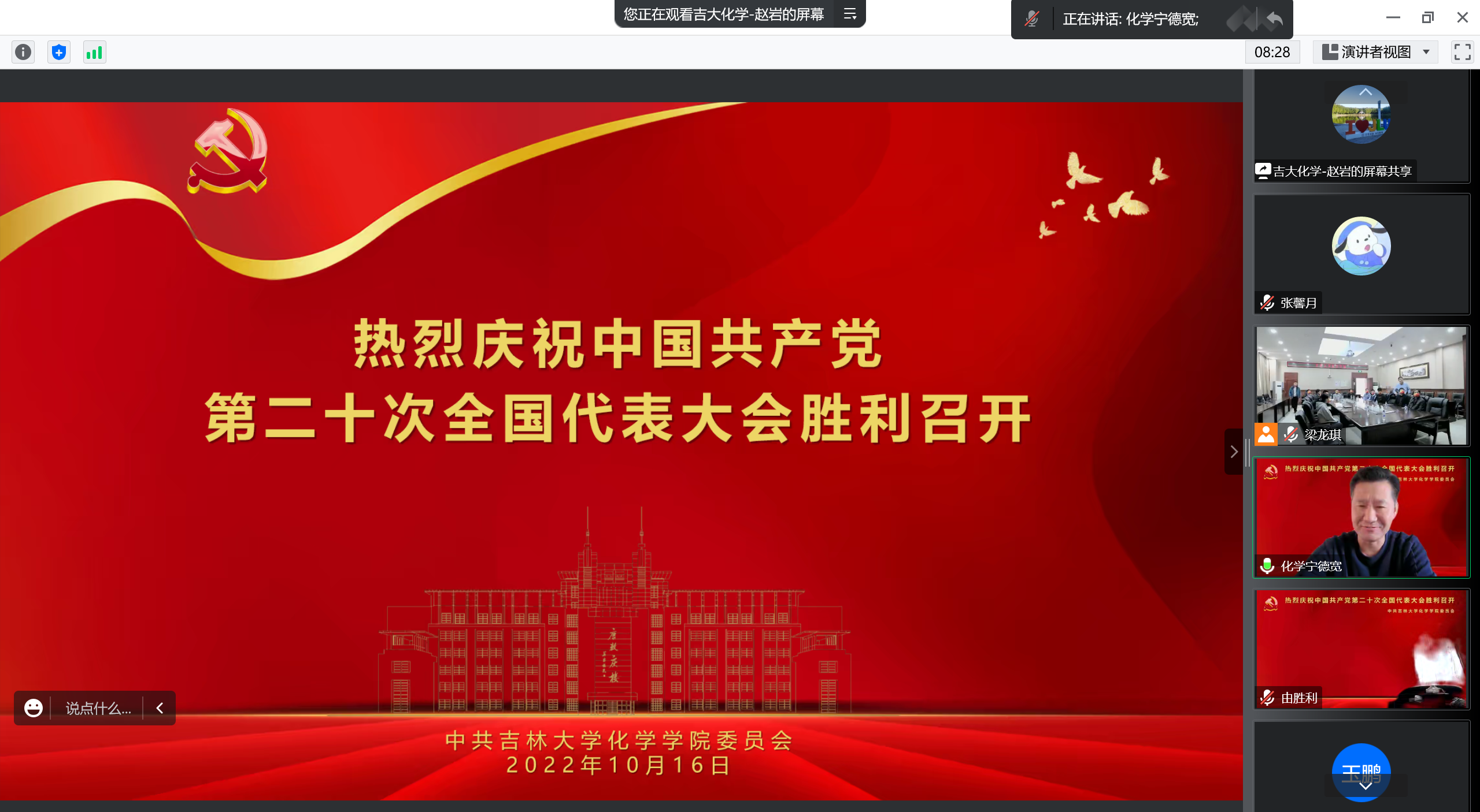 驻校教师和学生党员代表在唐敖庆楼A308会议室设立线下分会场。