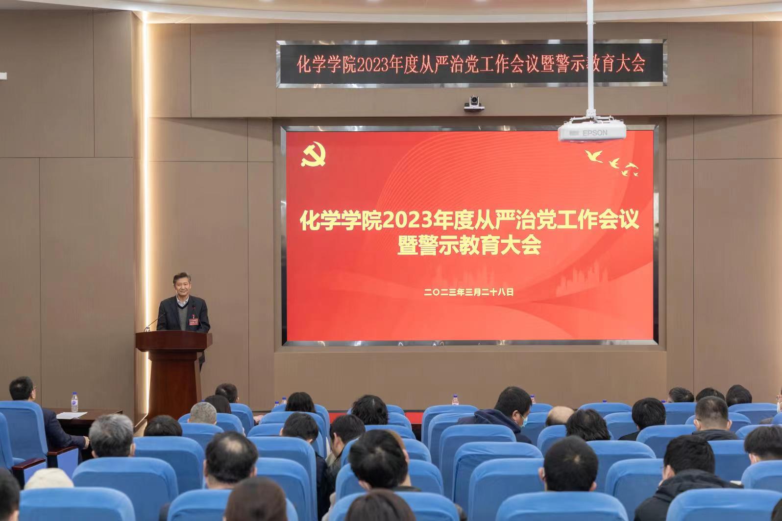 全面从严治党各项工作,坚决防止此类案件再度发生。三是提高政治站位,强化政治自觉,要严守政治安全,防范化解风险。守好意识形态阵地,做好思想政治工作,把好舆情监控,提高风险防范能力。四是全面完成2023年纪检监察工作重点任务,推动全面从严治党向纵深发展。五是持续深化中央巡视整改,积极配合校内巡视,全面彻底整改落实问题清单。六是强化作风建设,营造良好学术生态。七是强化严的基调,一体推进“三不腐”。不断深化警示教育,做到警示教育全覆盖。八是加强自身建设,锻造忠诚干净担当高素质的干部队伍。以“永远在路上”的韧劲,坚持不懈把全面从严治党向纵深推进,营造风清气正的工作环境,为化学一流学科建设提供健康发展动力。