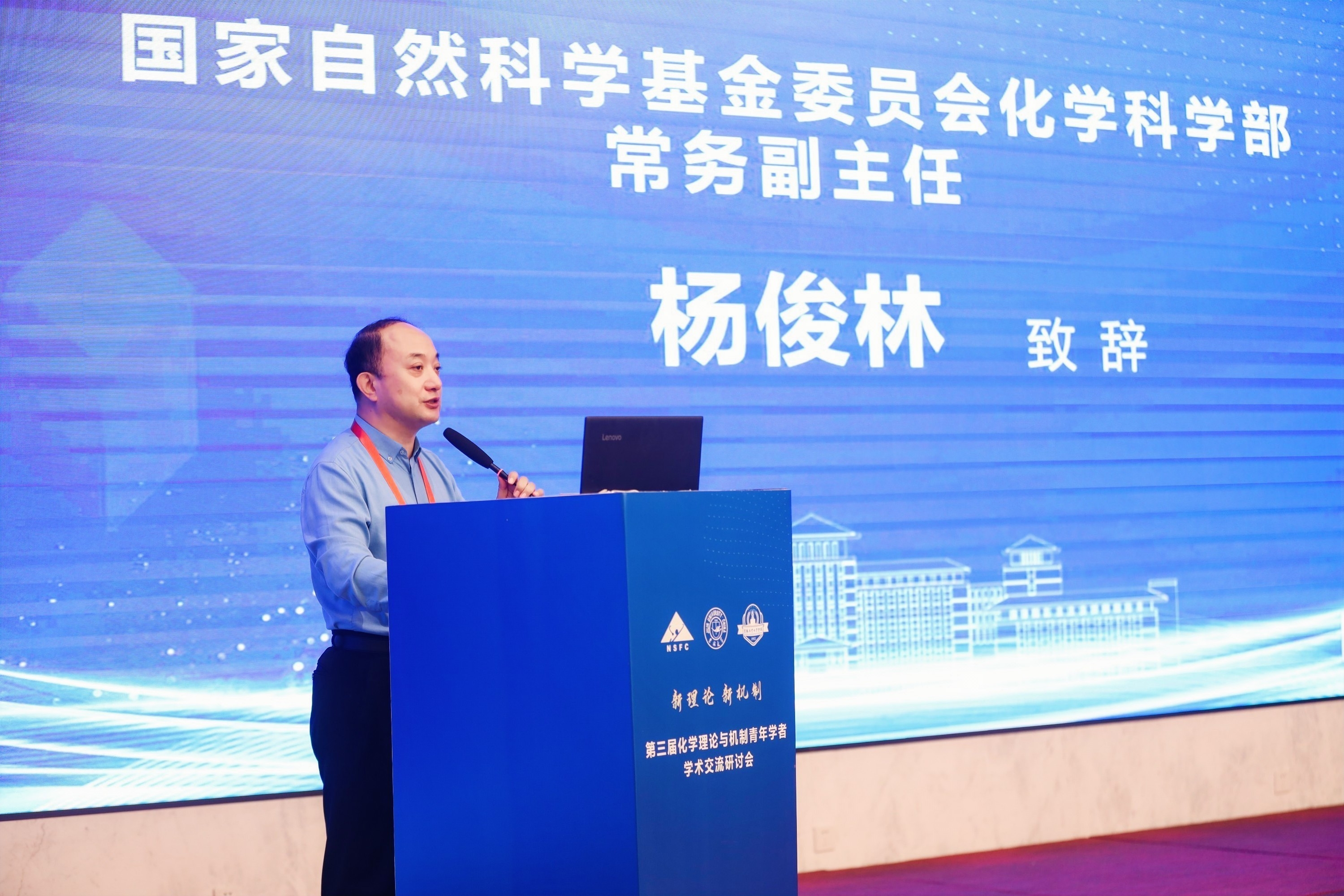 杨俊林在致辞中表示,自然科学基金委始终坚持“四个面向”,坚持目标导向和自由探索“两条腿走路”;通过持续深化科学基金改革,不断完善和发展科学基金制,提升资助效能;作为支持基础研究的主渠道,在推动基础研究高质量发展和培养创新人才方面发挥着重要作用。希望相关领域专家能够精准凝练科学问题,促进使用新的科研范式解决问题,让自然科学基金委能够更好、更精准地服务广大专家学者。他指出,化学理论与机制这一研究既是在持续探索科学的未知领域,也能应对人类面临的实际问题,自然科学基金委化学科学部将与广大专家学者一道,共同推动这个五彩的领域向前发展。