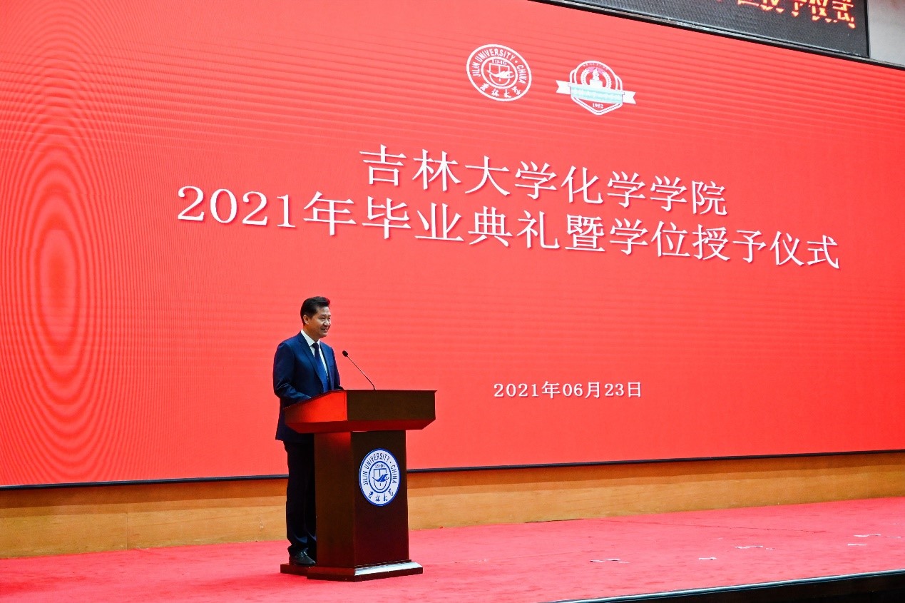 在毕业典礼上,院长吕中元教授对2021届毕业生同学们表示热烈的祝贺,并对老师们的辛勤培育和毕业生家人们的辛苦付出表示衷心的感谢。同时,吕中元对全体毕业生提出殷切期望,期望他们在未来的人生征程中去探索、去发展、去创造化学领域的新原理、新方法和新技术,实现自我价值的同时能够积极加入到科技强国的伟大事业中,为实现国家高水平科技自立自强谱写黑料正能量