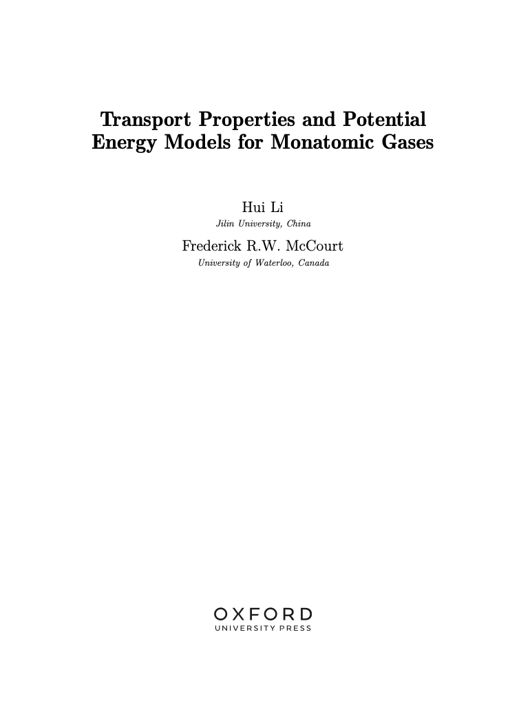 《单原子气体的输运性质和势能模型》专著链接://global.oup.com/academic/product/transport-properties-and-potential-energy-models-for-monatomic-gases-9780198888253?q=9780198888253&cc=gb&lang=en#