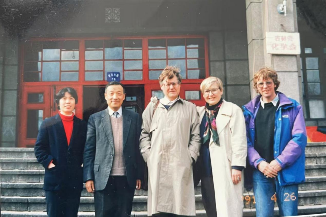 图3 1991年沈家骢教授邀请德国专家来校合作访问 周慧(左一)沈家骢教授(左二)