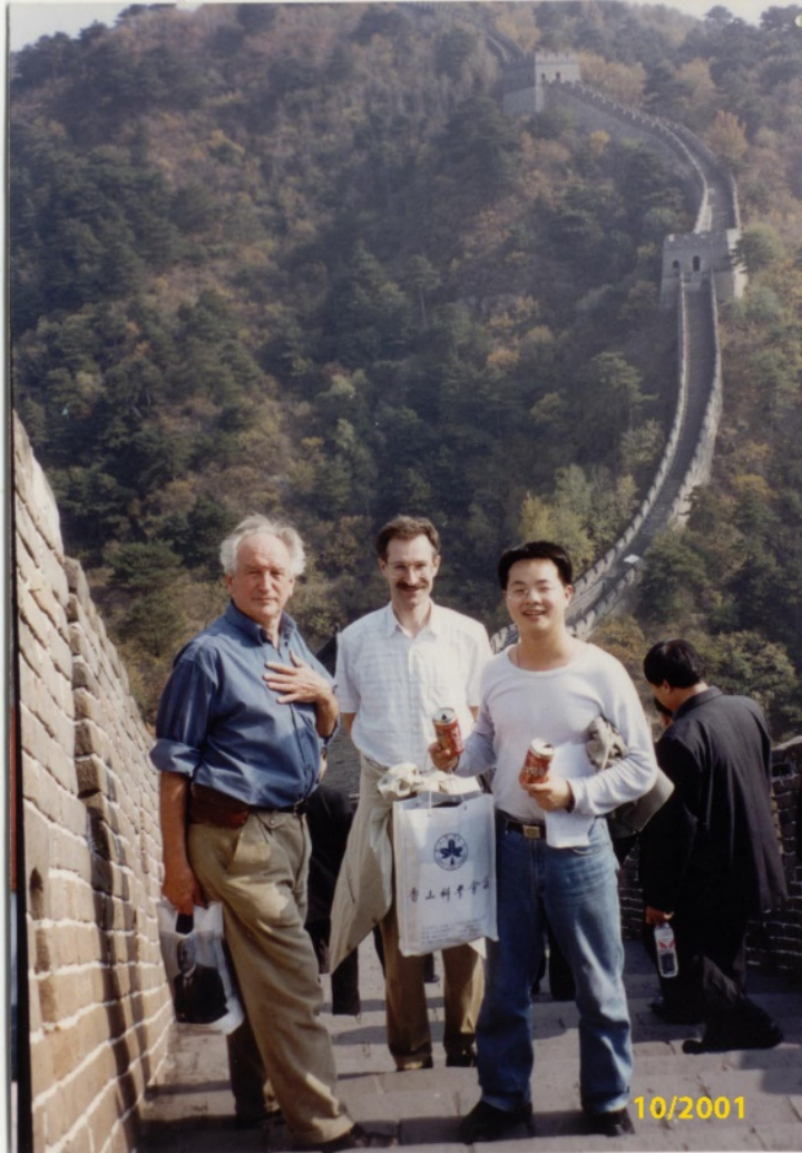 超分子实验室的师生基本都参加了此次会议,也包括我。我承担了部分后勤志愿者服务工作,包括陪Ringsdorf教授爬长城,也近水楼台聆听了他对于做科研的体会和教诲。此次香山会议也让我有机会将自己关于多糖单分子力学的一些研究成果以墙报的形式给与会者分享,其中一位听众就是我后来的博士导师Whitesides教授。当时Whitesides教授对我墙报上引用的Mark Twain的一句话印象深刻:“A man who carries a cat by the tail learns something he can learn in no other way.”(一个抓住了猫尾巴的人能够比采用其它方式学到更多)。我引用这句话想表达单分子力学研究或许能给出一些研究本体材料得不到的重要信息。当时我正在准备申请国外博士,与Whitesides的深入交流为我后来申请哈佛做了很好铺垫。