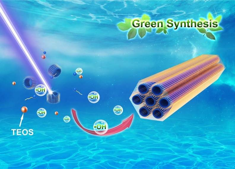 、无机合成与制备化学国家重点实验室于吉红院士科研团队提出了一种利用自由基路线在无酸体系合成高度有序介孔氧化硅SBA-15的方法。通常,在无酸条件下合成的介孔氧化硅呈现的是无序的孔道结构。他们利用紫外光照射产生的·OH自由基促进原硅酸四乙酯(TEOS)的水解以及硅物种与表面活性剂的自组装过程,在完全无酸的绿色反应条件下得到了高度有序的介孔二氧化硅SBA-15。研究发现,通过适当光密度的紫外光对TEOS-P123-H2O反应体系进行照射,体系中生成的·OH自由基会促进Q3和Q4物种的形成,从而有利于具有高比表面积、高度有序的SBA-15的形成。进一步研究发现,当在反应体系中加入Fenton试剂,可以合成铁负载效率高达50%的有序介孔Fe-SBA-15,解决了在酸反应体系中过渡金属难以负载的问题。通过向反应体系中加入痕量的自由基引发剂Na2S2O8, 也可以得到高度有序的SBA-15。该研究开创了利用自由基路线合成高度有序的介孔氧化硅材料的新思路,并为其大规模工业生产提供了应用前景。这一成果近期发表在Journal of the American Chemical Society上。