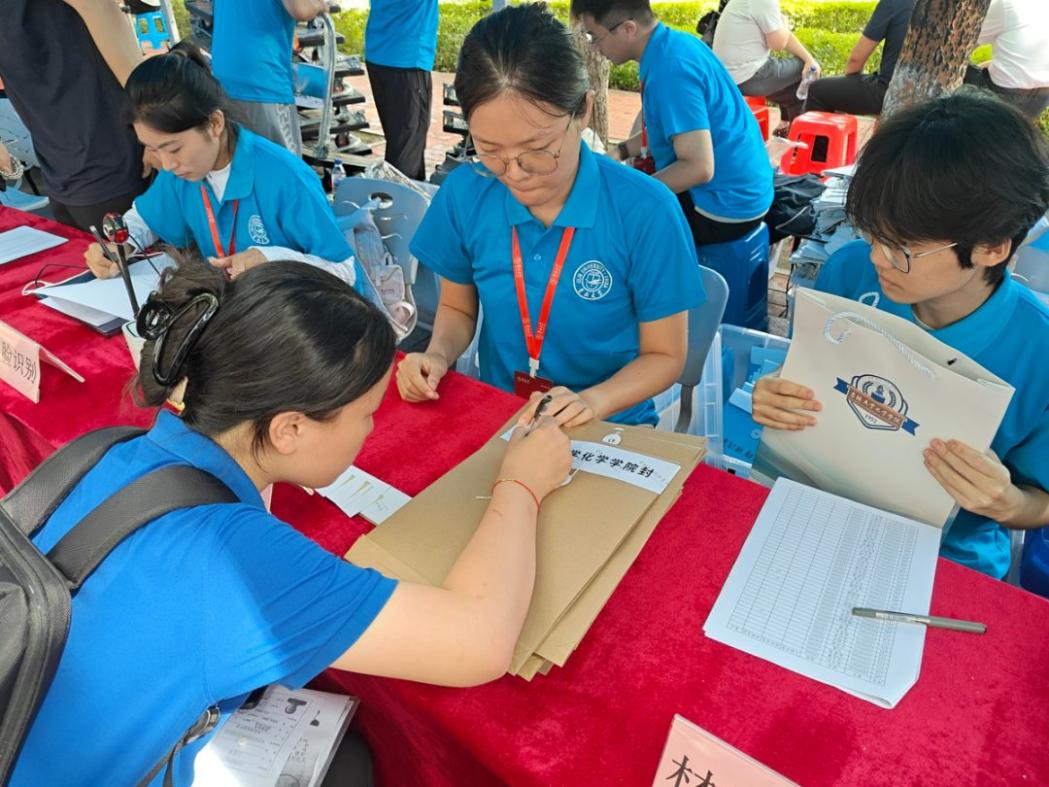招募并培训了150余名志愿者,在校园内7处工作点位集结上岗。从路线导引到行李搬运,从身份查验到材料收发,志愿者们满怀热忱投身迎新工作,以饱满的精神状态、细致入微的服务,耐心为2025级新生办理相关报到手续。