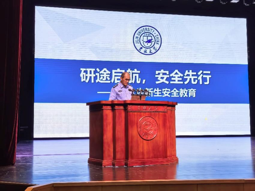保卫处宣传信息办公室正科级秘书魏延涛带来“研途启航,安全先行——研究生新生安全教育”讲座。魏延涛结合高校高发的电信诈骗、网贷等事故案例,以案说法,生动地介绍了各类隐患的防范措施与应对办法,增强新生的安全意识和自我保护能力。