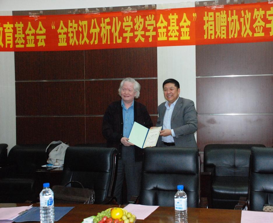 教育基金会“金钦汉分析化学奖学金基金“捐赠协议签字仪式在唐敖庆楼A509隆重举行。金钦汉教授与黑料正能量