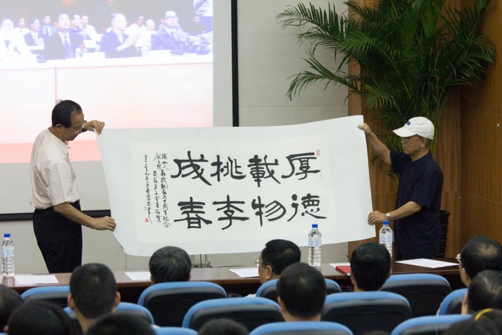 李守贵教授等四位嘉宾作为师从徐如人院士的学生代表向徐院士及其夫人庞文琴教授赠送鲜花和字画,以表达对恩师的崇敬和庆贺之情。此外,中国化学会等多家研究院所也发来贺信向二老表示祝贺。