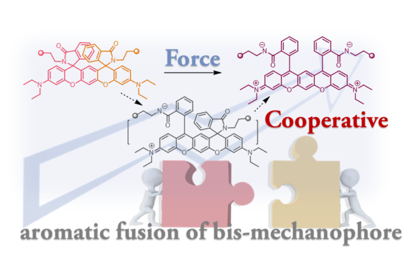 图4.稠合双罗丹明实现高分子中力诱导的协同开环和变色