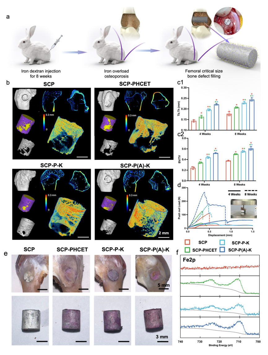 图3. 铁过载引起的骨质疏松症环境下的骨缺损修复评价