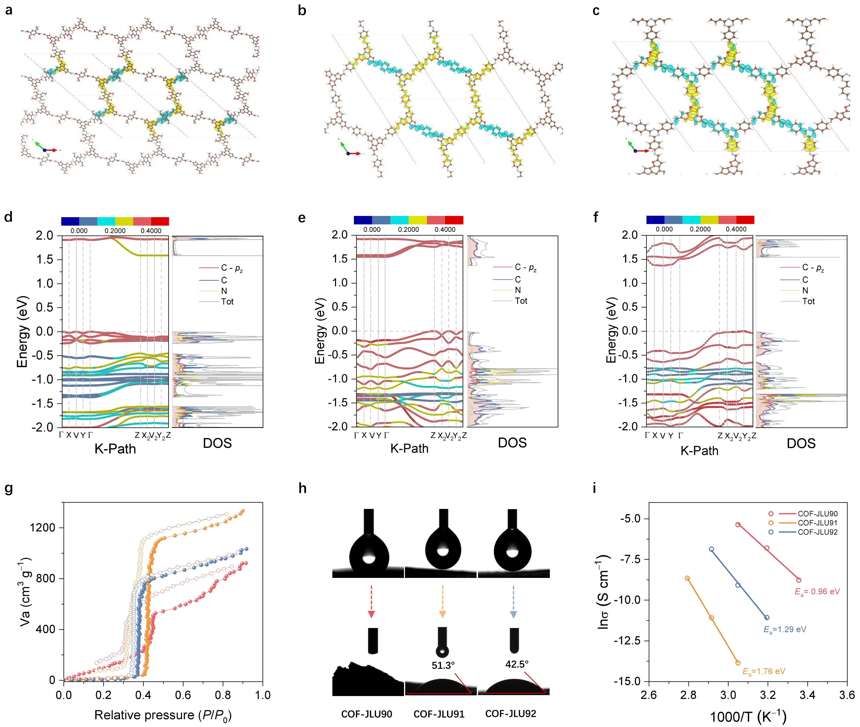 图3. COF-JLUs的的理论分析和亲水性、质子传输能力研究
