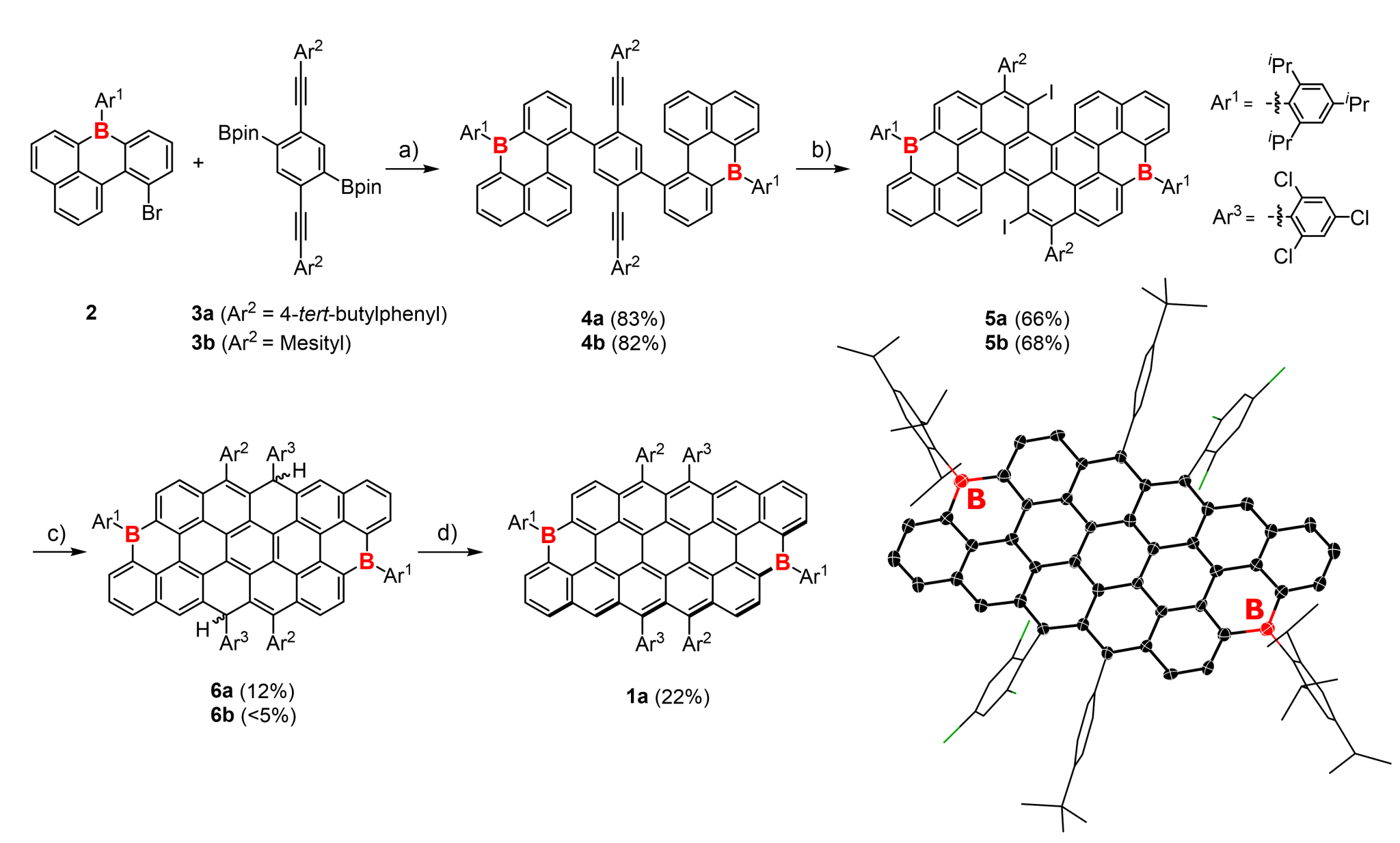图2.目标分子1a的合成路线和单晶结构