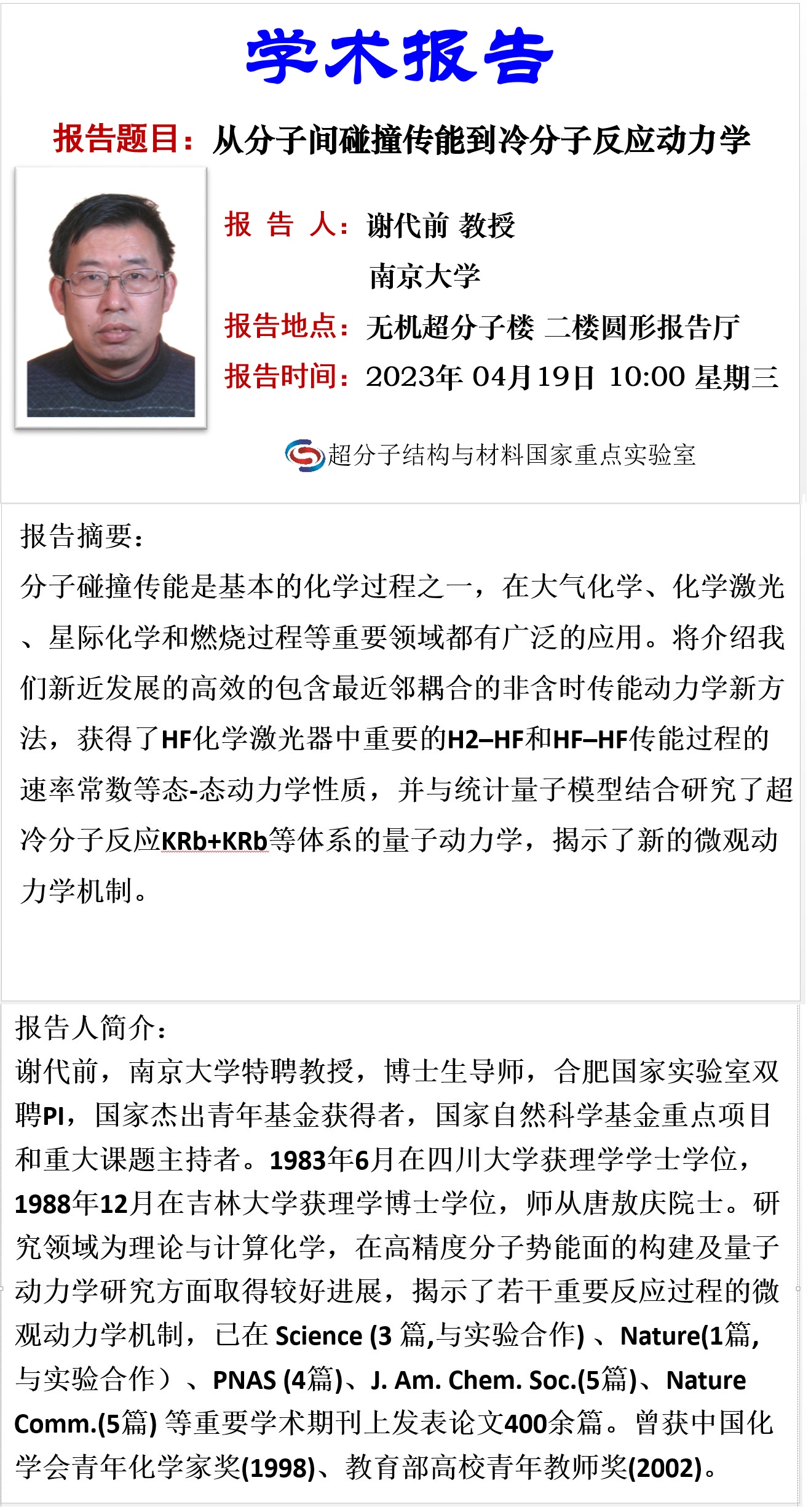 中心校区 无机-超分子楼二楼圆形报告厅