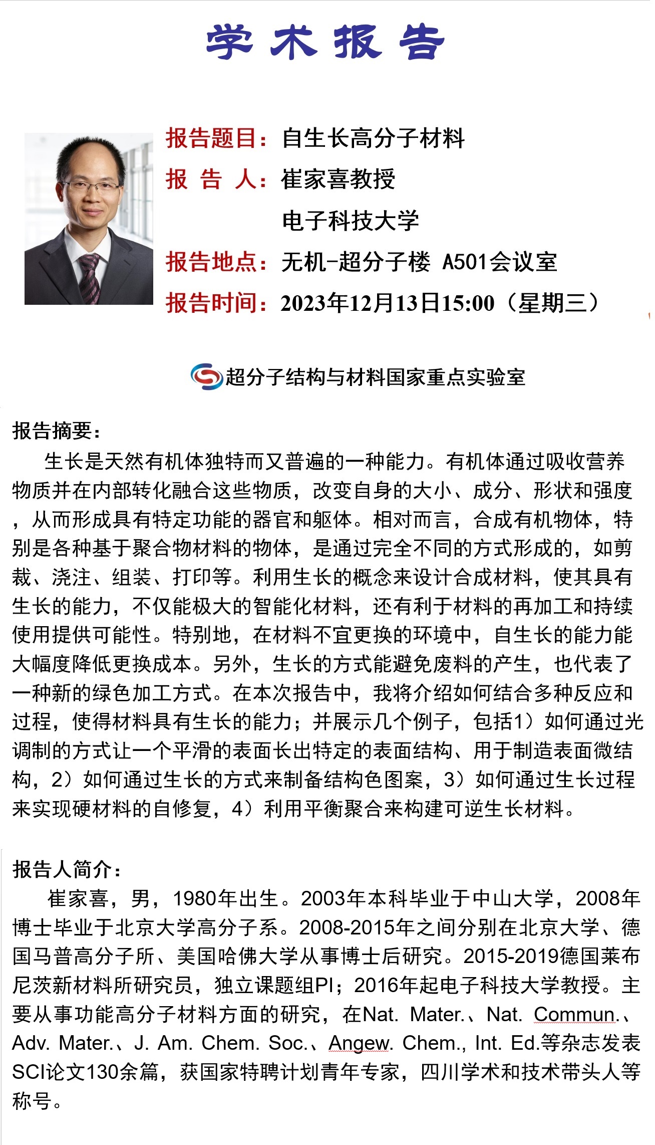 中心校区 无机-超分子楼 A501会议室