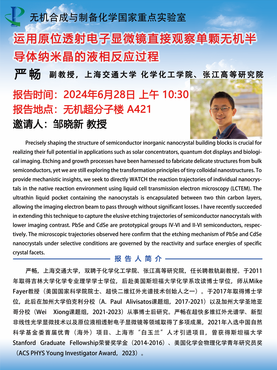 运用原位透射电子显微镜直接观察单颗无机半导体纳米晶的液相反应过程