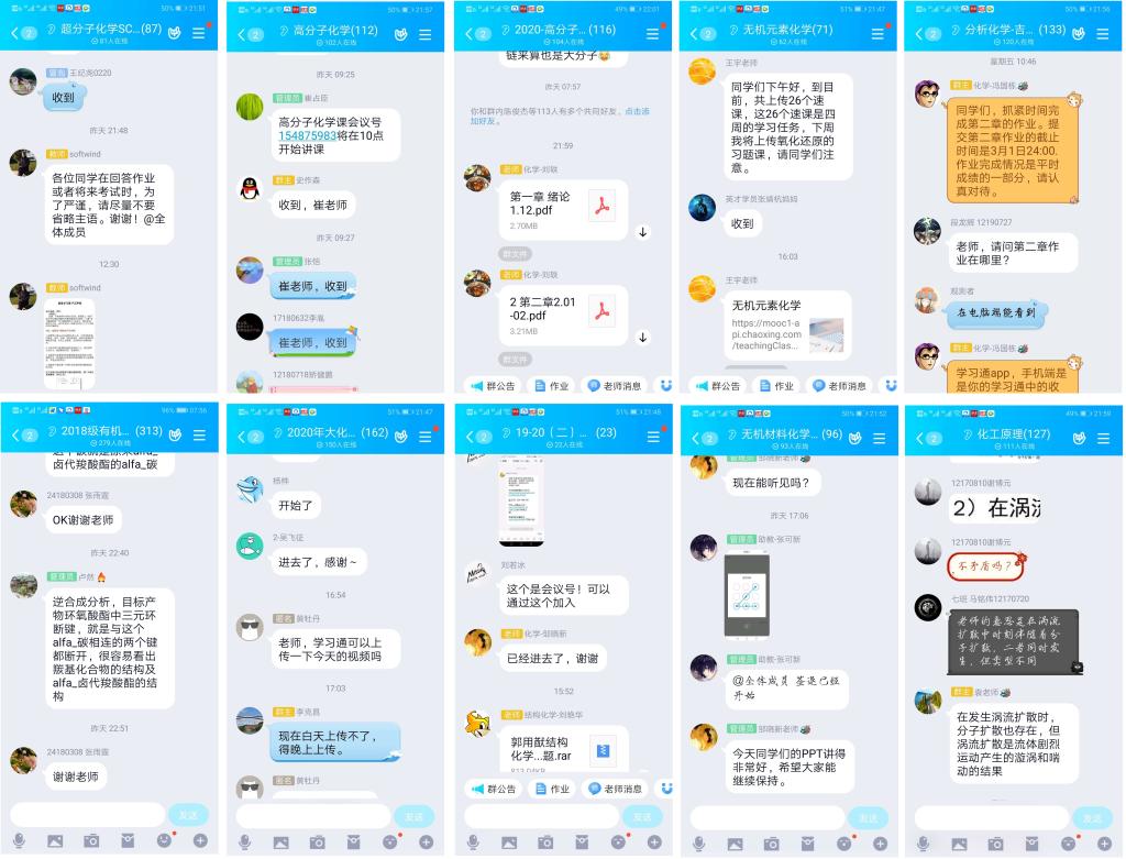 在线学堂、学习通、腾讯会议、QQ群、微信群等教学平台和在线交流平台,多采用“网络直播+在线交互”的教学模式,稳步推进在线教学。