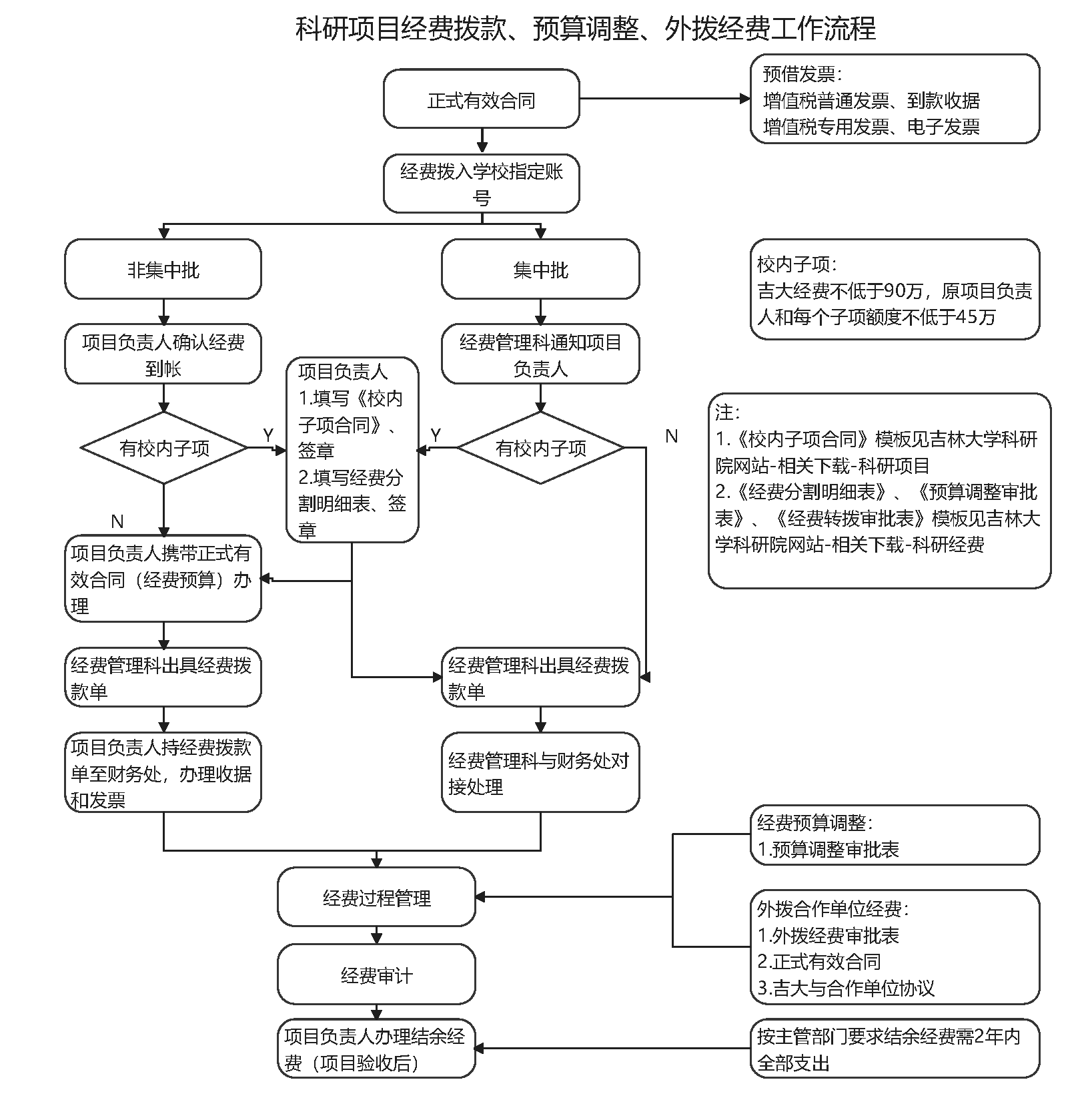 科研项目经费拨款、预算调整、外拨经费办理工作流程
