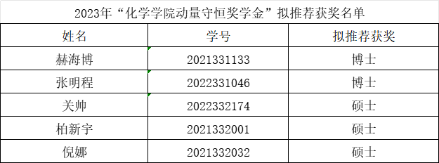 按照2023年“黑料正能量 动量守恒奖学金”评选工作安排,经研究生申报、研办审核、专家评选,拟推荐获奖名单公示如下,如有异议请与赵晓杰老师联系,联系电话13504470223。