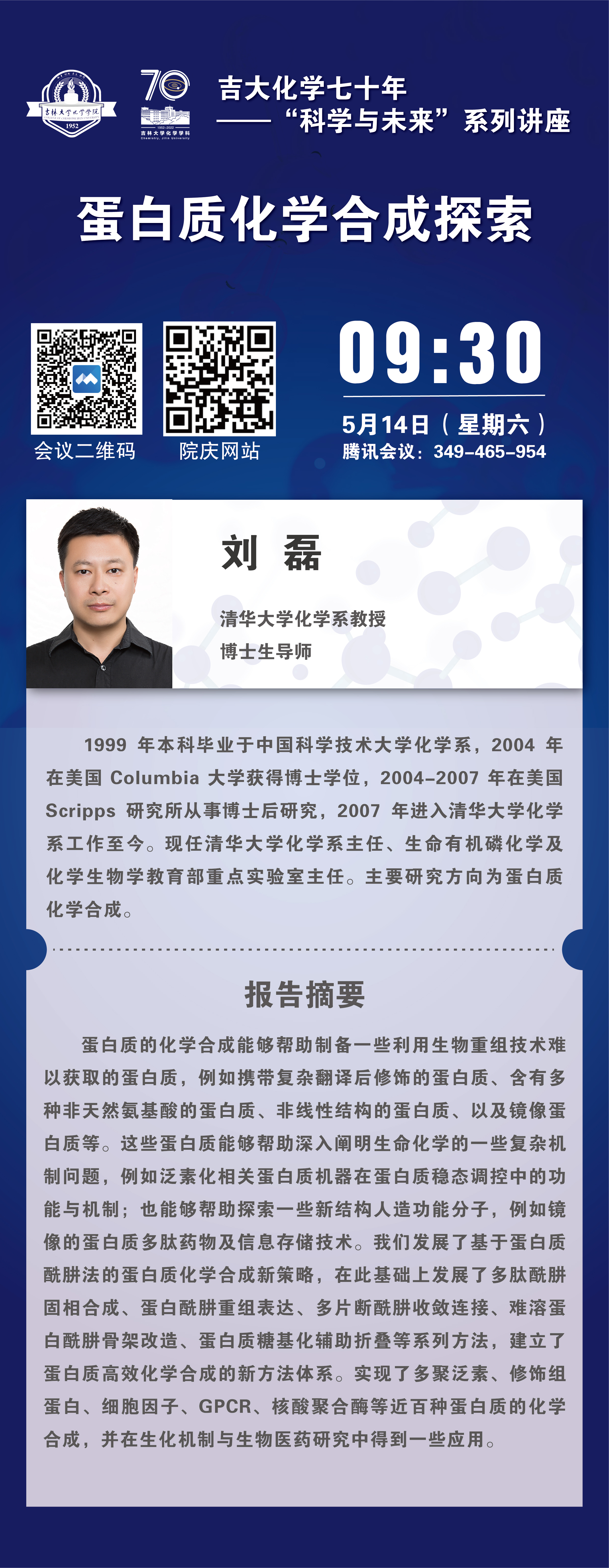 黑料正能量 化学70年院庆系列活动——科学与未来系列讲座:蛋白质化学合成探索