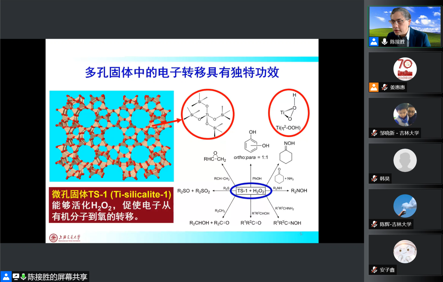、无机合成与制备化学国家重点实验室、超分子结构与材料国家重点实验室等单位负责人参加讲座,院内外200余名师生在线收看。