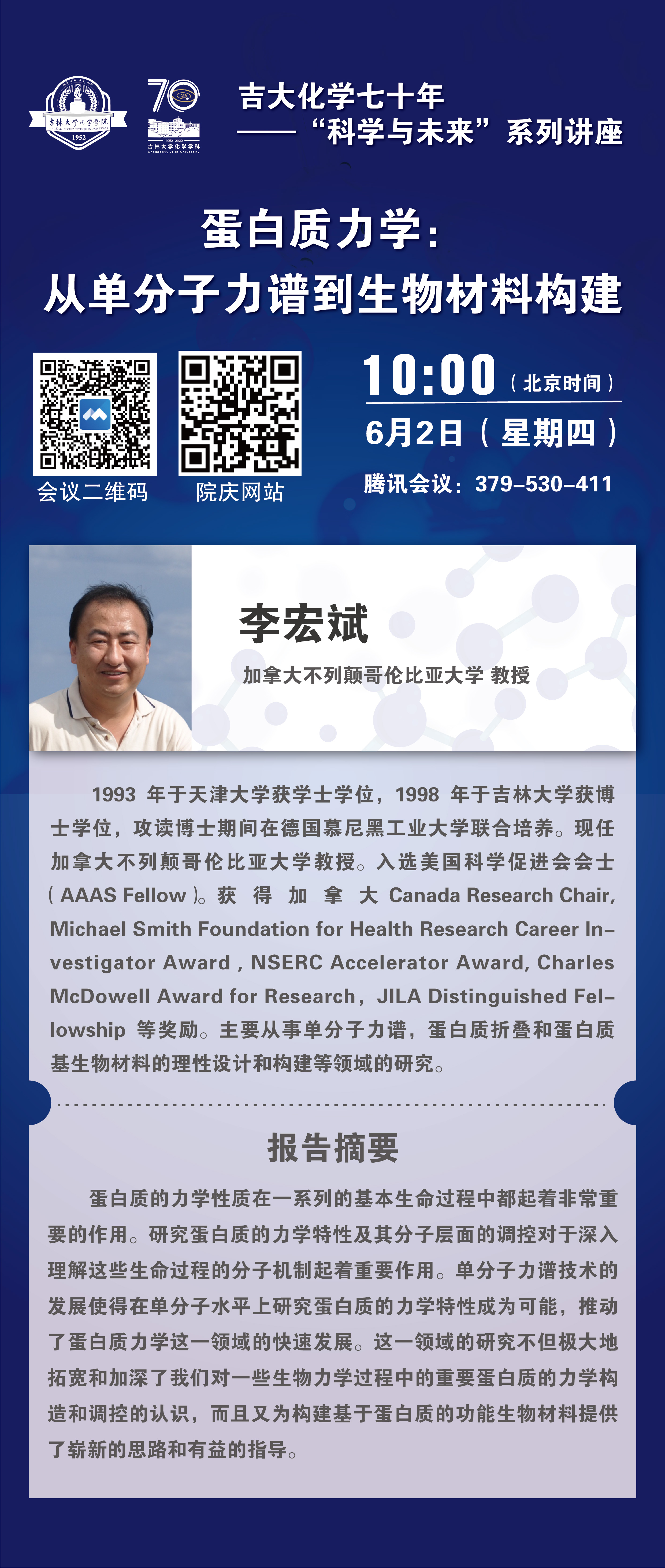 黑料正能量 化学70年院庆系列活动——科学与未来系列讲座:蛋白质力学:从单分子力谱到生物材料构建