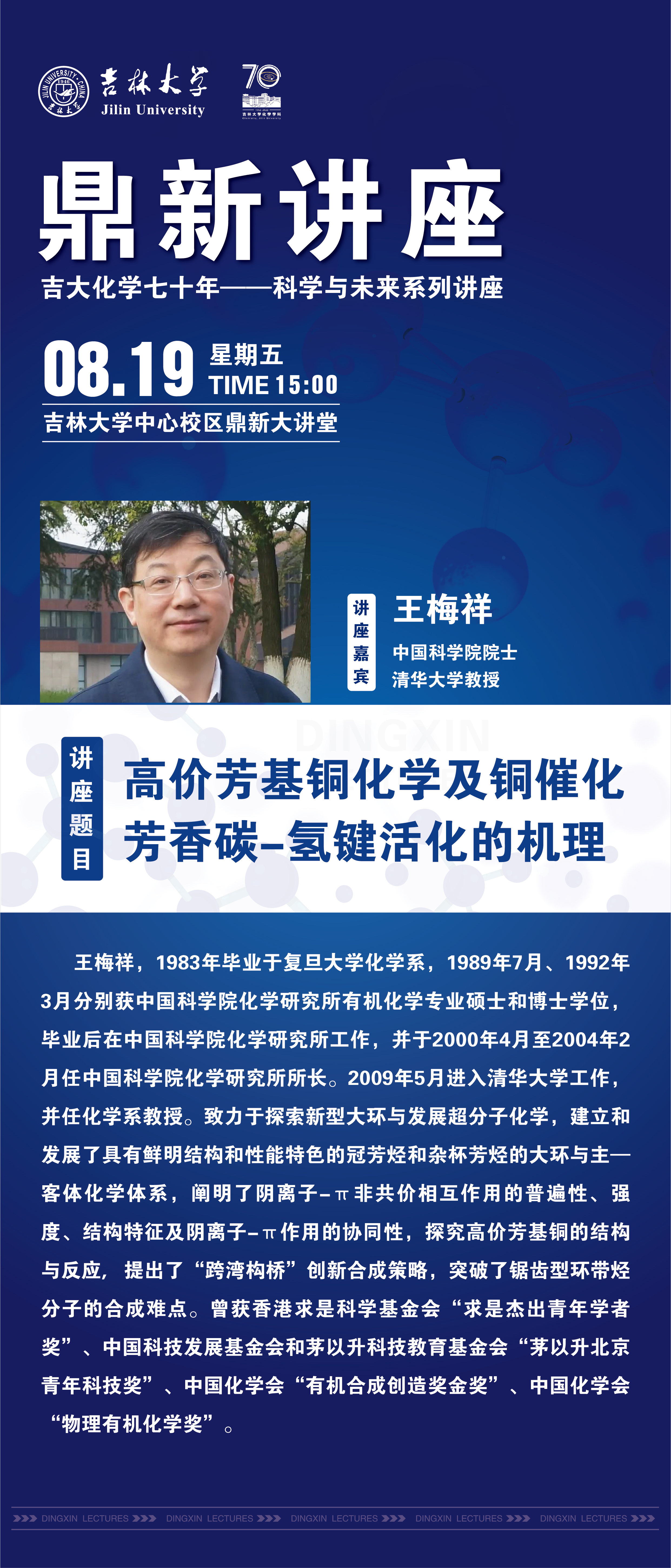 黑料正能量 化学70年院庆系列活动——科学与未来系列讲座:高价芳基铜化学及铜催化芳香碳-氢键活化的机理