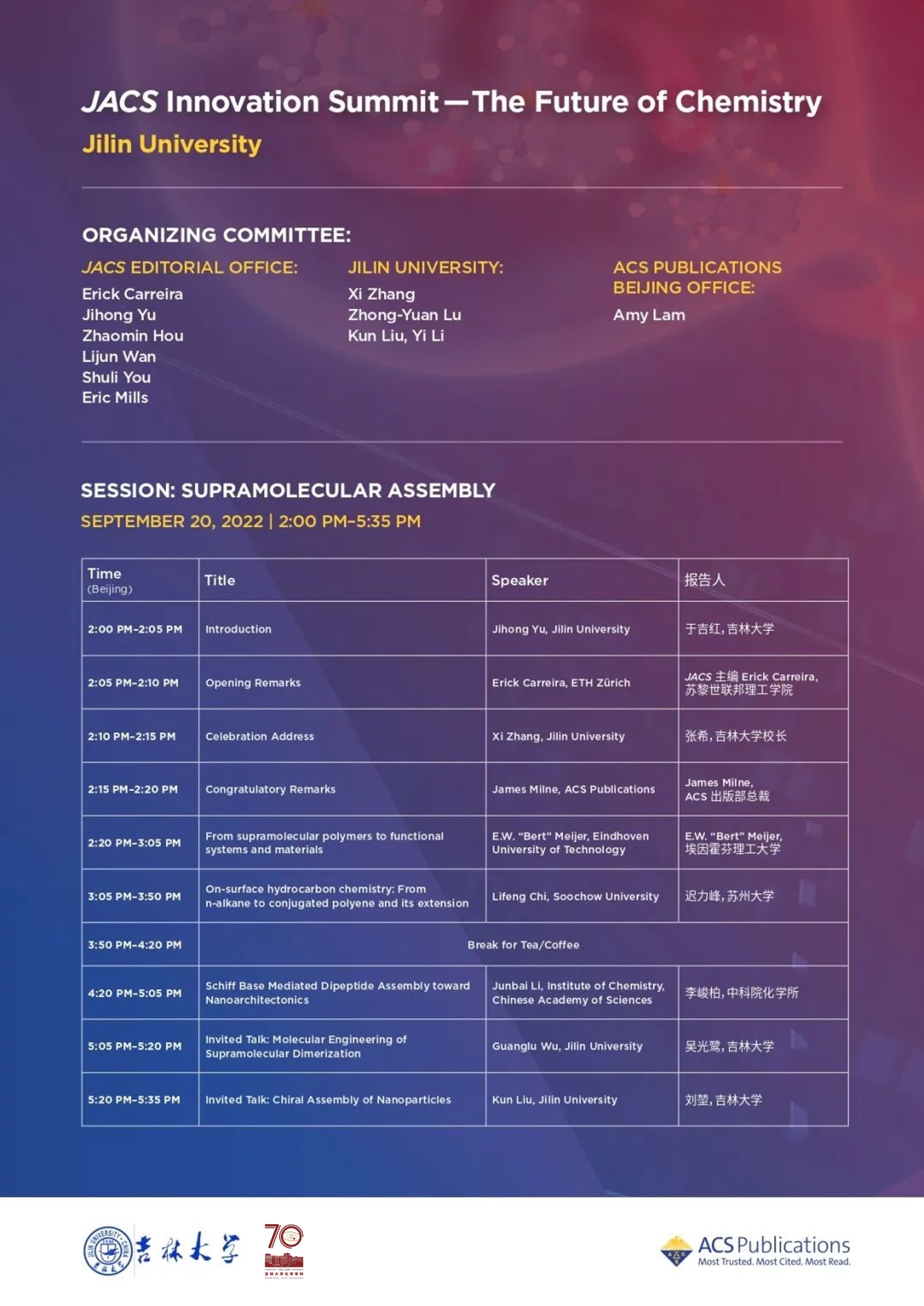 化学学科创建70周年暨JACS 创新峰会,JACS Innovation Summit — The Future of Chemistry, 于北京时间9月20日14:00-17:35、9月21日9:00-17:35线上直播,欢迎关注ACS美国化学会视频号,参加讨论!
