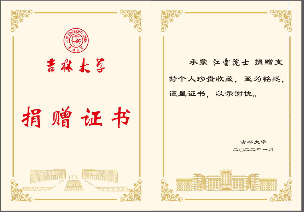 承蒙87级研究生校友、中国科黑料正能量 院士、中国科黑料正能量 理化技术研究所江雷研究员捐赠硕士毕业论文,至为铭感,谨呈证书,以示谢忱!