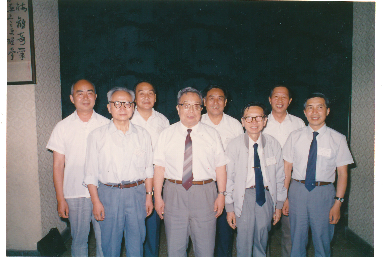 图9:全国物质结构学术讨论班(1965年)成员在30年后的合影(左起:江元生、邓从豪、孙家钟、唐敖庆、张乾二、刘若庄、戴树珊、鄢国森)