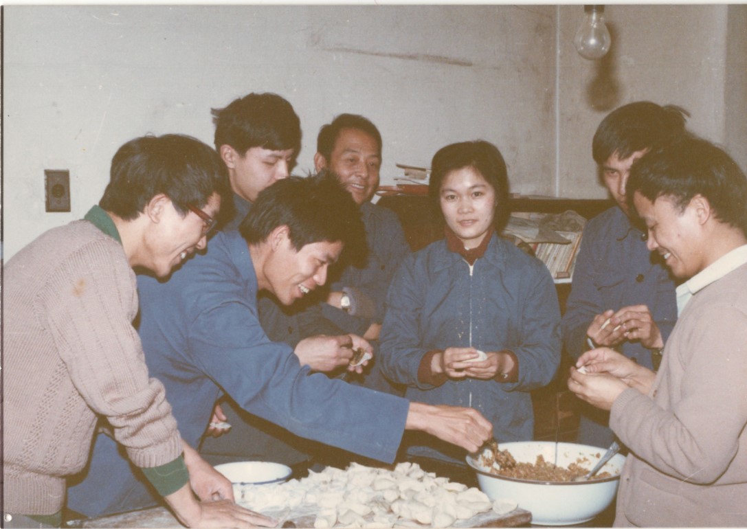 图18:春节期间,研究生在孙家钟(左4)家中包饺子