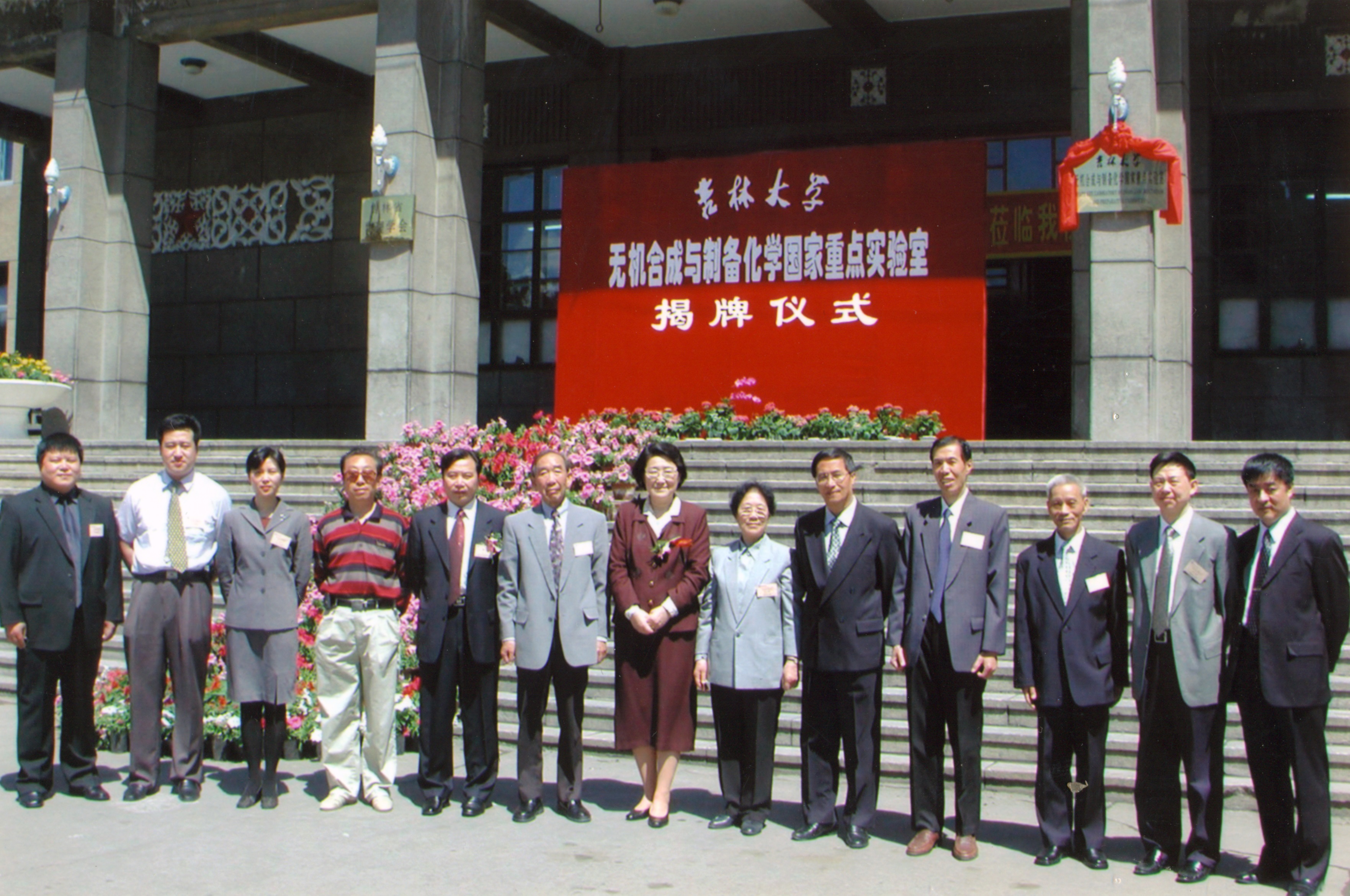 举行无机合成与制备化学国家重点实验室揭牌仪式(前排左起:薛亦深、丁世海、于吉红、付国良、冯守华、徐如人、刘淑莹、庞文琴、吴通好、李连生、徐翊华、肖丰收、程树海)