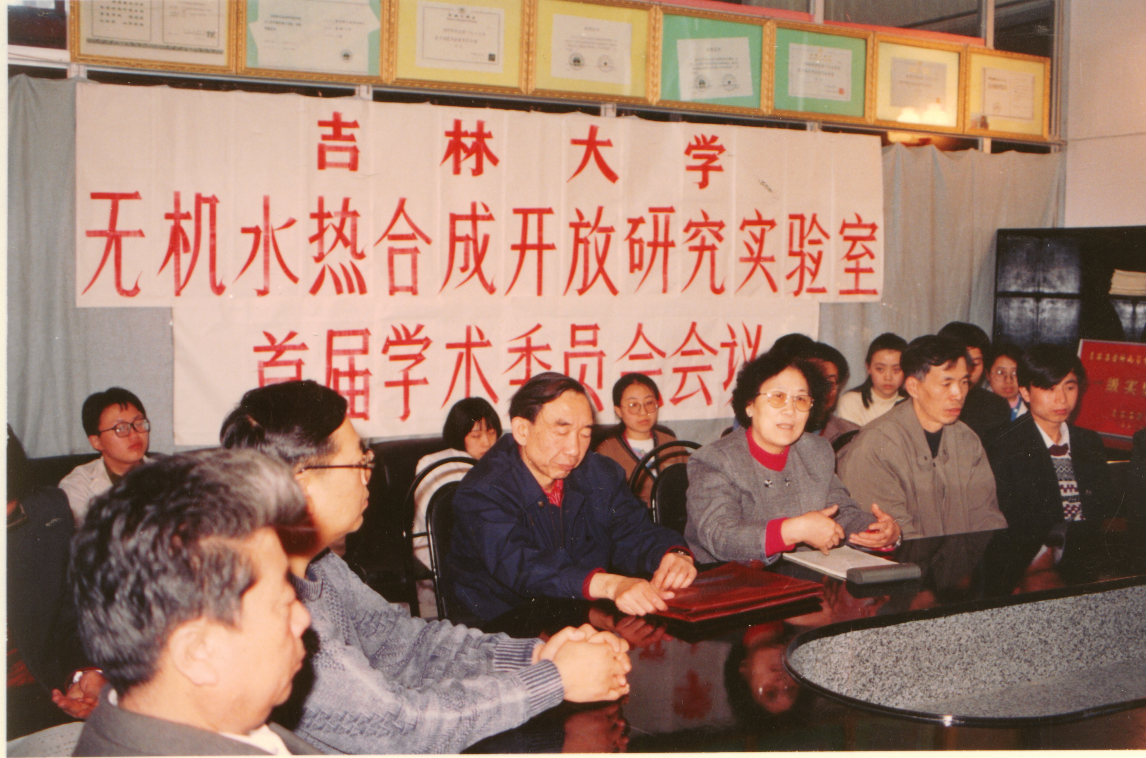 图16:无机水热合成开放研究实验室首届学术委员会会议(前排左3为徐如人,左4为庞文琴)