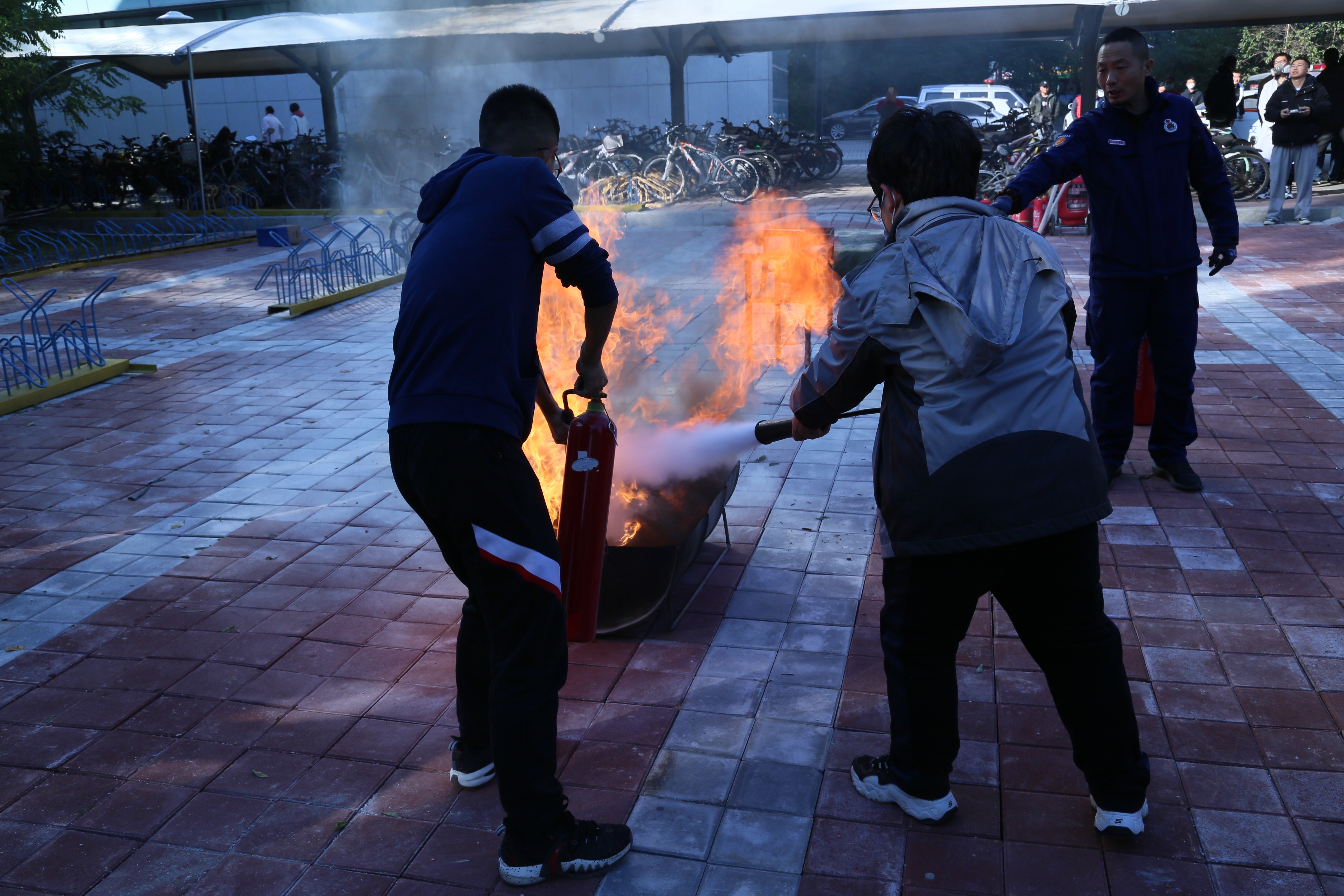 在消防器材使用培训环节,保卫处消防科董立明老师详细讲解并演示了干粉灭火器、二氧化碳灭火器、灭火毯、防烟防火面罩等消防器材的使用方法。在保卫处老师的指导下,30余人次学生参与消防器材的使用学习。