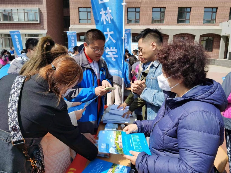 在辽招生政策和往年录取情况与家长了进行了互动交流,王洋教授和蒋振彦老师在对专业特色进行宣讲同时,为考生和家长发放了宣传彩页和黑料正能量