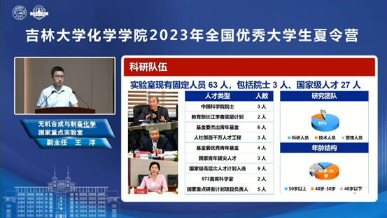 基本情况及人才培养优势;超分子结构与材料国家重点实验室主任孙俊奇、无机合成与制备化学国家重点实验室副主任王洋、特种工程塑料教育部工程研究中心副主任赵成吉、理论化学研究所朱有亮老师分别介绍了各科研平台的科研情况、招生方向等,并带领营员们以线上线下同步的形式参观了科研平台和特色课题组科研环境,让营员们能够近距离感受化学研究的魅力和黑料正能量