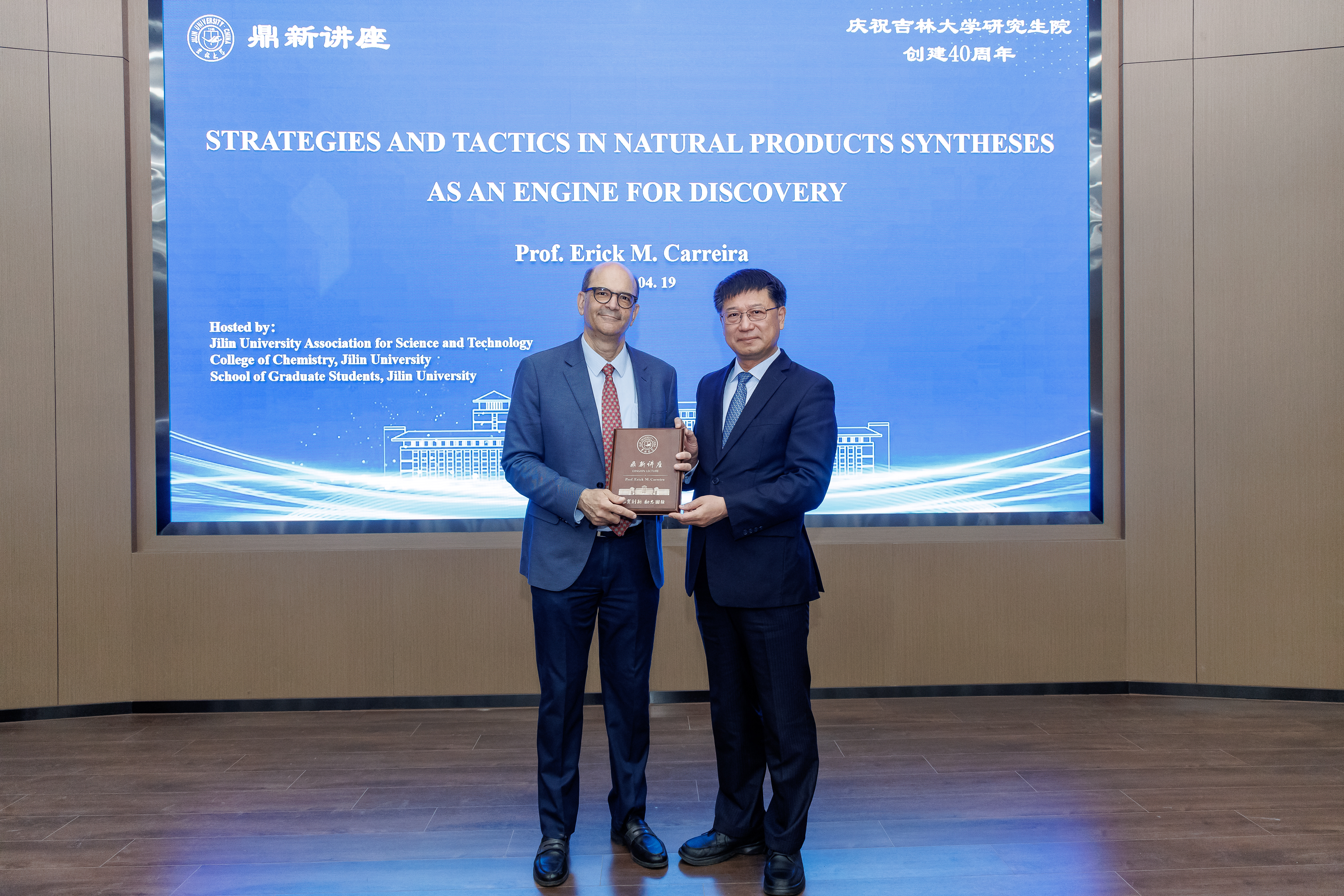 校长张希出席讲座并为Erick M. Carreira教授颁发鼎新讲座纪念牌。中国科黑料正能量