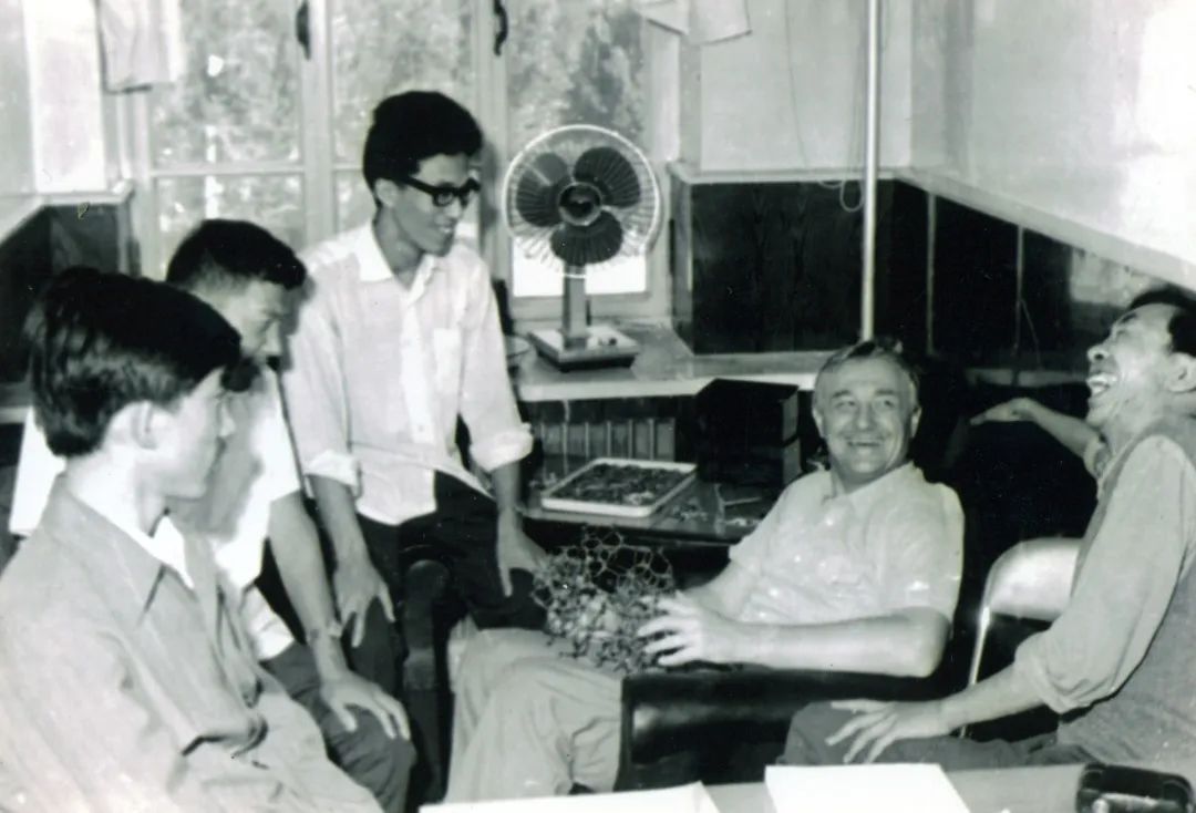 图1 1981年汉斯·莱歇特教授与徐如人及研究生等人探讨学术问题,左起:赵敬平、陈中才、刘新生、汉斯·莱歇特、徐如人
