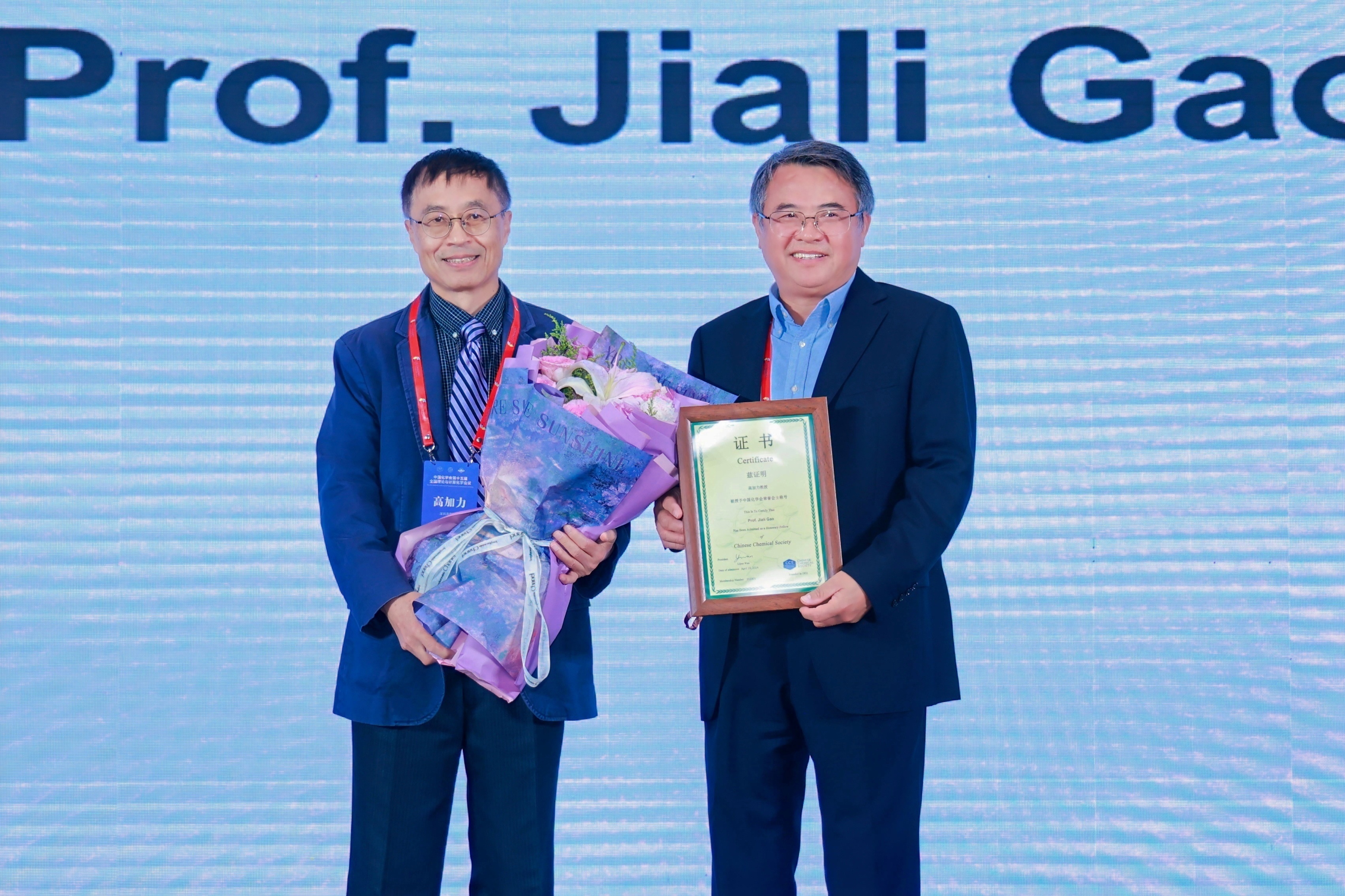 院士、美国明尼苏达大学高加力教授颁发荣誉会士证书。
