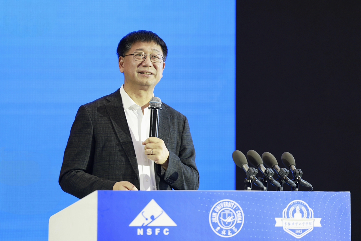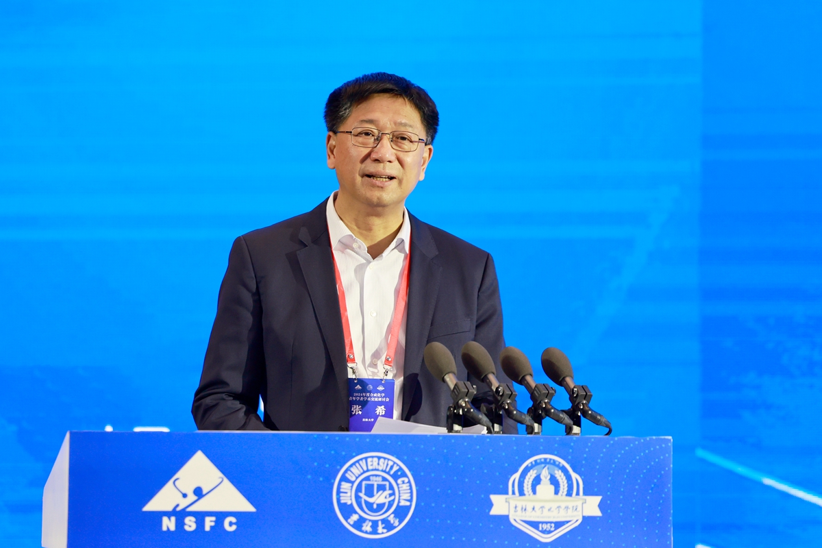 为本次会议的精心组织和筹备表示感谢,并介绍了国家自然科学基金委“合成化学”领域的由来以及合成化学青年学者学术交流研讨会的发展历程等相关情况。他表示,本次研讨会汇聚了指导专家、青年学者等不同的学科群体,以“大会/口头报告、海报/特邀海报”多样化的交流方式开展研讨,其中采用了海报分奇偶场、口头报告随机排序的特殊安排,旨在消融学科壁垒,实现合成化学的高质量发展。