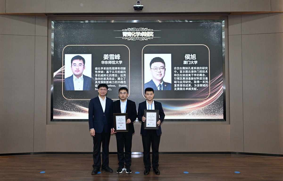 福建物质结构研究所所长曹荣,清华大学化学系原主任王训为“菁青化学星火奖”获奖人颁奖。颁奖仪式由王树涛主持。
