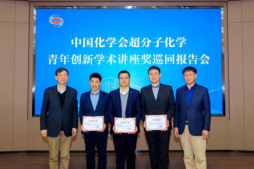 理化技术研究所丛欢研究员、上海交通大学颜徐州研究员颁奖。三位获奖者分别以《有机金属超分子化学》《共轭多环超分子》《机械互锁聚合物》为题作专题报告,并对师生提出的学术问题作了耐心、细致的解答。