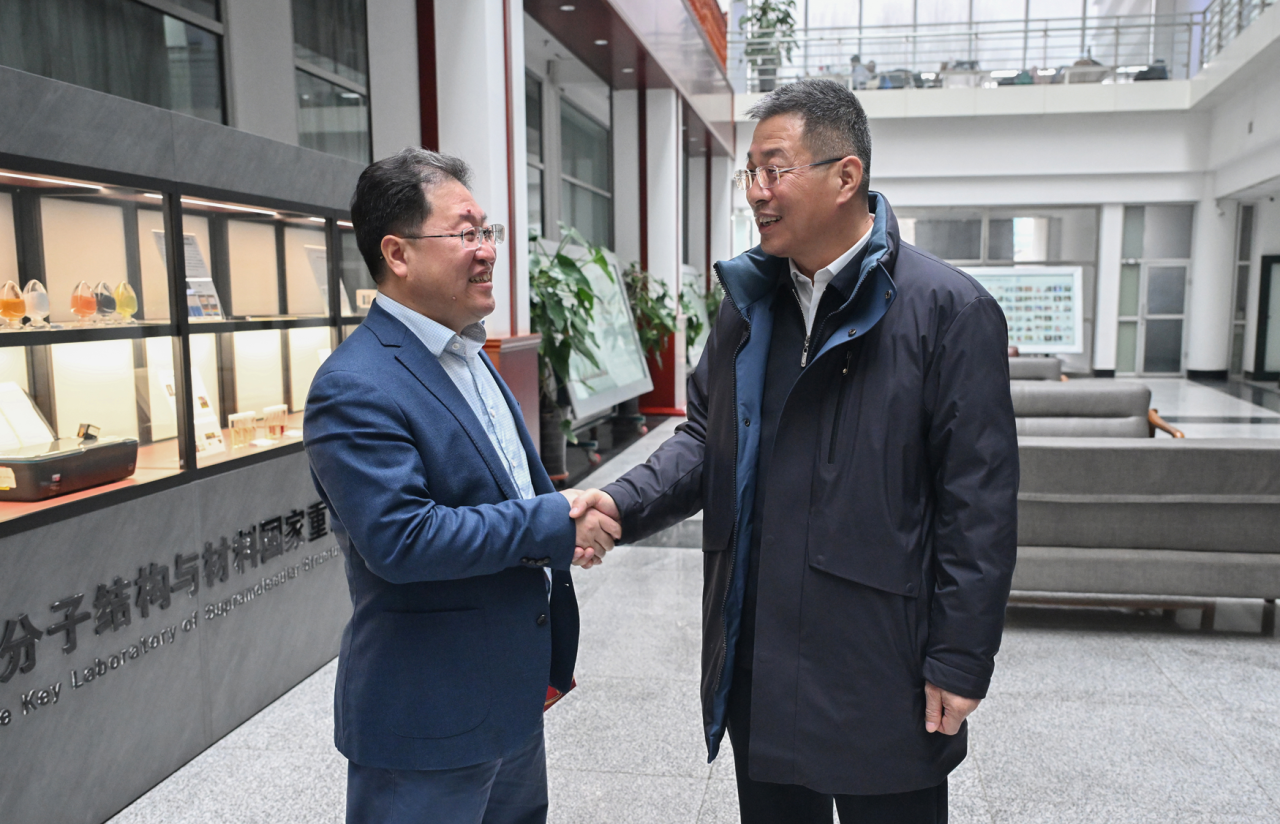 调研超分子结构与材料全国重点实验室建设与科研情况,参观自主研发设备“光调制-力耦合相关谱探测系统”。