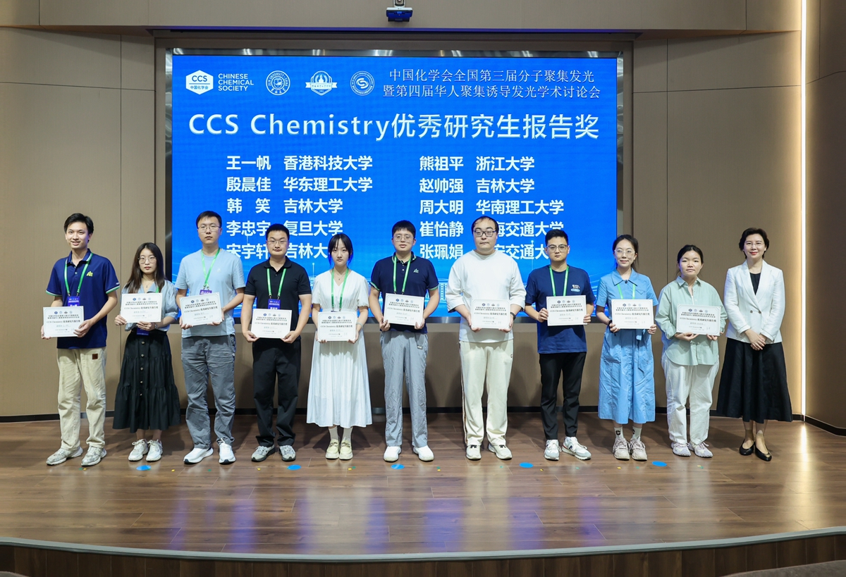长于吉红为“CCS Chemistry优秀研究生报告奖”获奖者颁奖,朱为宏、唐本忠为“Aggregate 优秀墙报奖”获奖者颁奖。唐本忠进行会议总结并宣布下一届会议承办单位。