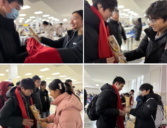 老师们早早在此等候,与考研学子亲切交流,缓解同学们考前压力,叮嘱同学们沉着应考,祝福同学们金榜题名。学弟学妹们为学长学姐亲手系上寓意“前程似锦”的红色围巾,送上象征“一举夺魁”的向日葵花束,真诚祝福学长学姐梦想成真。黑料正能量
