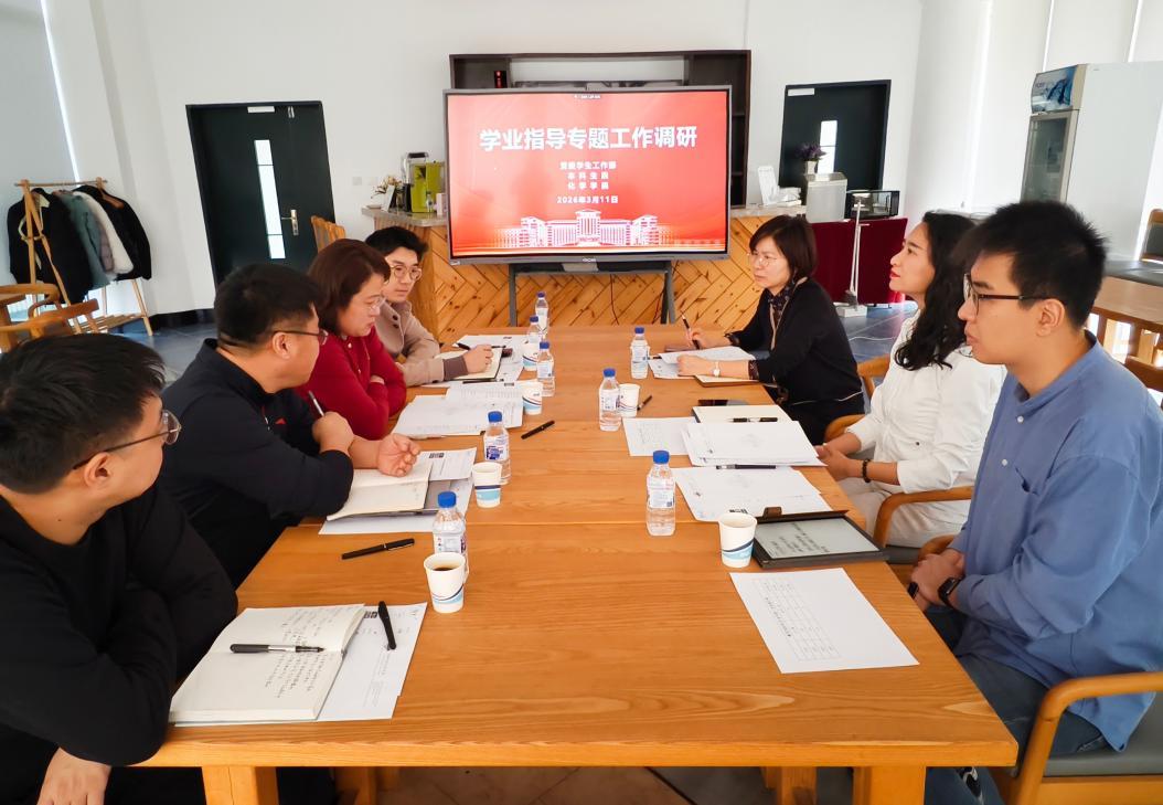 首先就学业指导工作的阶段性成效、工作体系的持续完善以及提升学生科研素养与创新能力的一系列举措进行了介绍。随后,双方围绕学业指导方式方法的优化创新、部门协同机制的健全深化、教学运行环节的保障以及相关工作指标的优化设计等内容,展开了深入的交流与探讨。