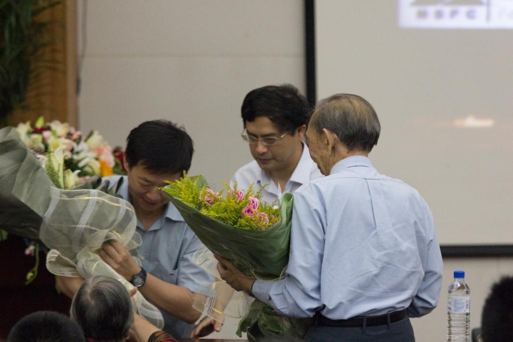 李守贵教授等四位嘉宾作为师从徐如人院士的学生代表向徐院士及其夫人庞文琴教授赠送鲜花和字画,以表达对恩师的崇敬和庆贺之情。此外,中国化学会等多家研究院所也发来贺信向二老表示祝贺。