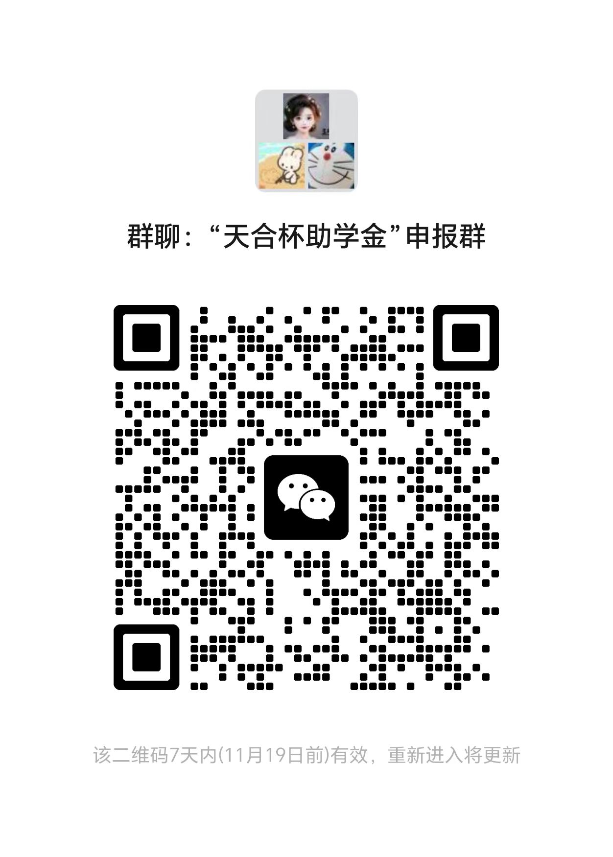 1.个人申请。学生本人自愿报名,11月14日12:00前使用个人邮箱账号登录“一张表”平台(//one.heiliaobase.com),在“研究生评奖评优管理”-“研究生评奖评优申报”栏,点击【新增】进行【天合杯助学金】信息填报,同时扫码入群。