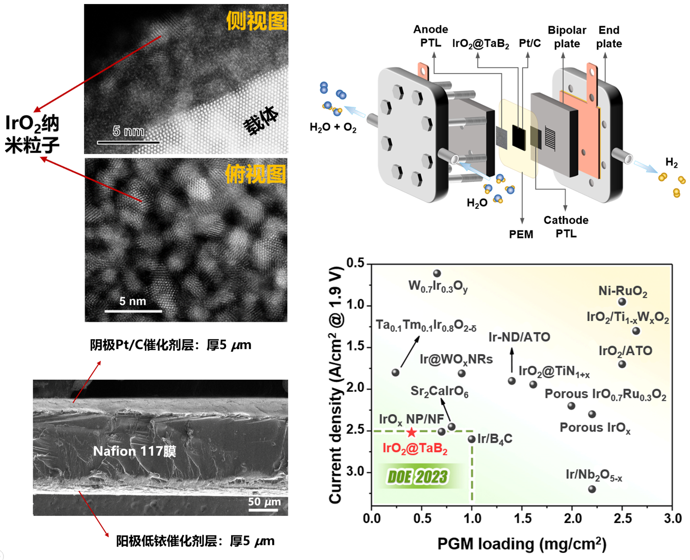 图:IrO2@TaB2催化剂、膜电极及PEM电解槽应用