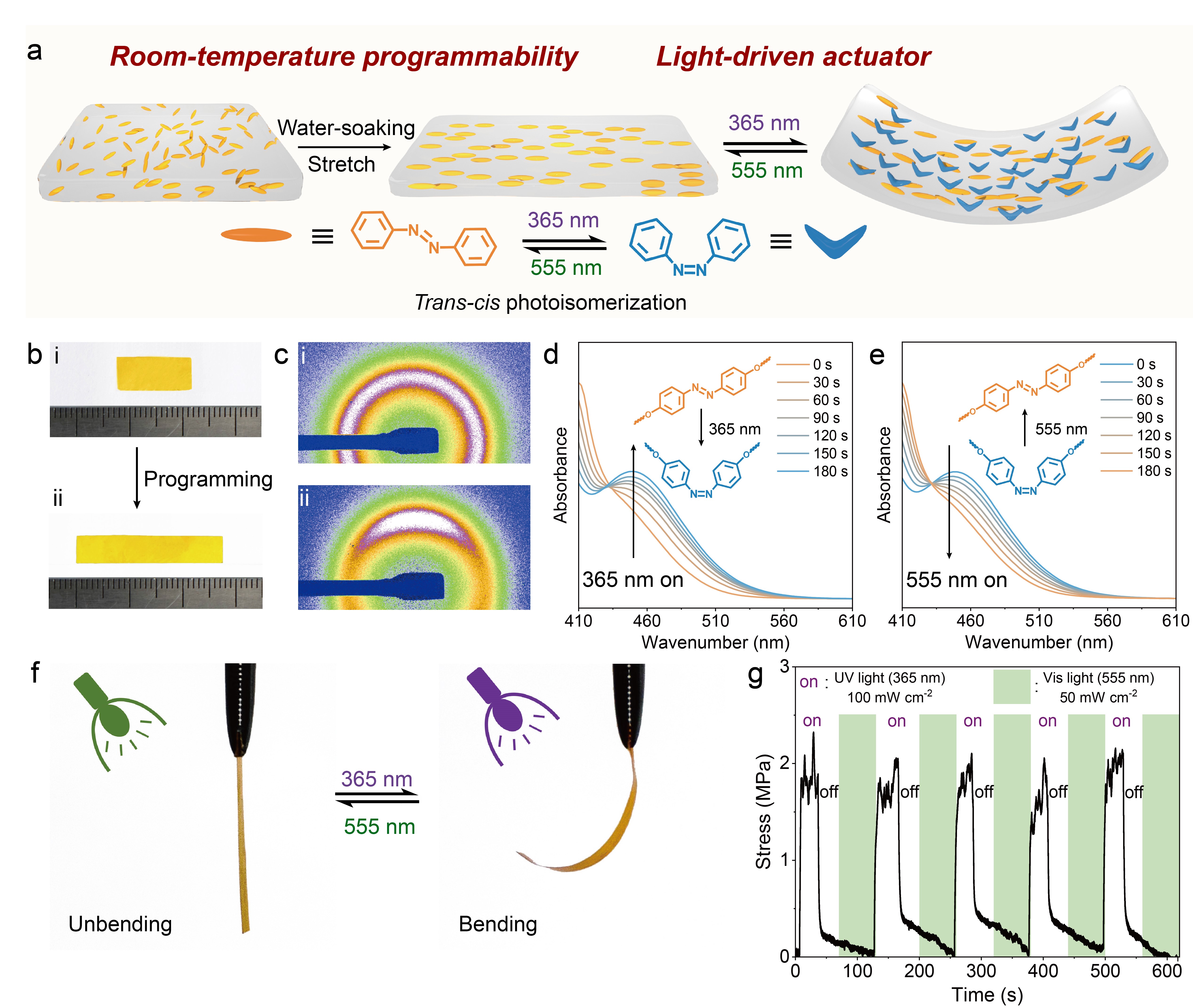 Azo-DCv-LCN的室温编程及光驱动行为
