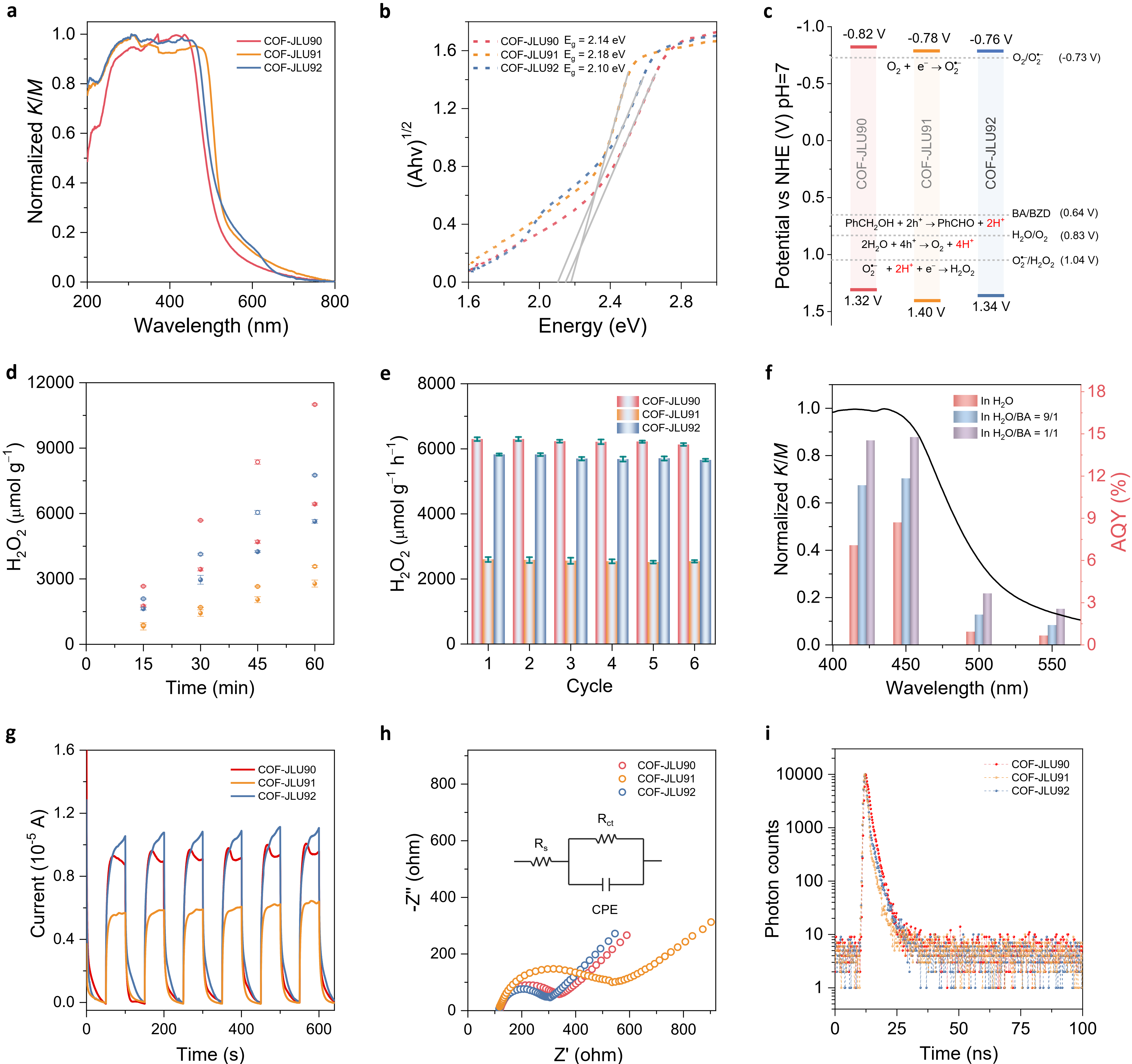 图2. COF-JLUs的光电响应和光催化性能研究
